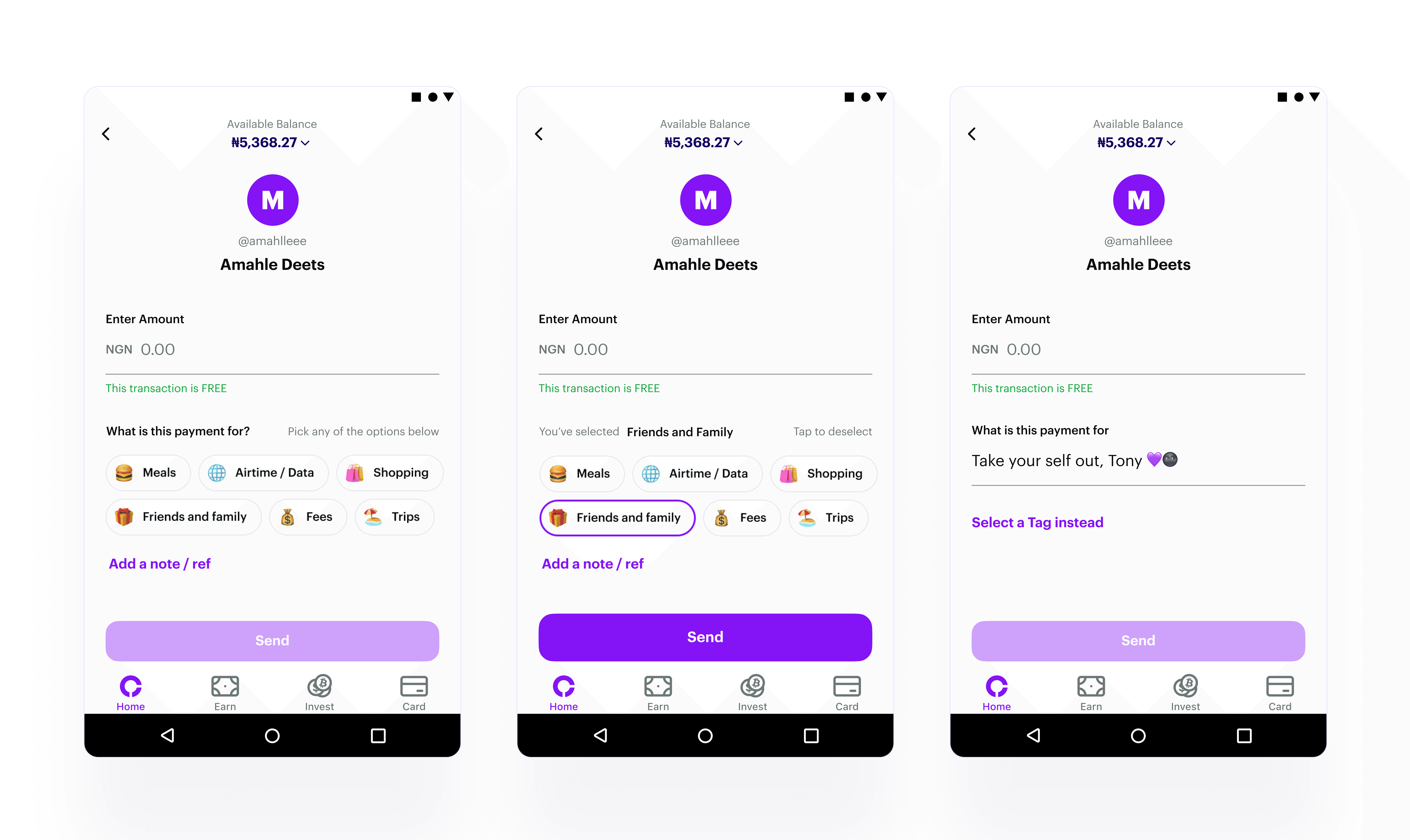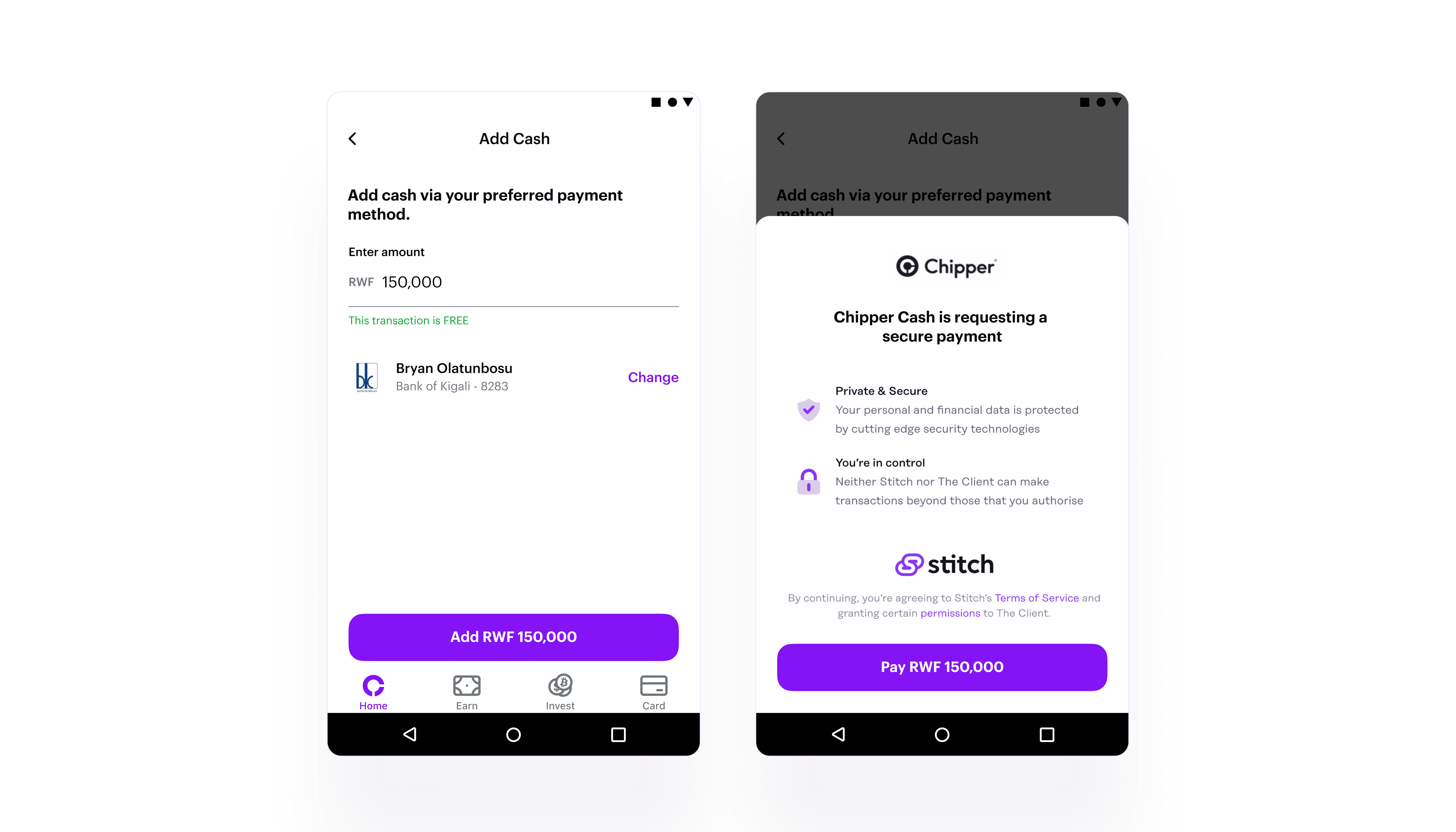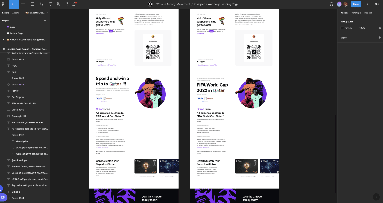 I joined the Chipper team as Product Designer, Growth, where I led design & discovery for growth projects, designed and iterated on our payment experiences, and oversaw design for the money movement squad. Any experience related to sending or receiving money, P2P & Cross-border? I was your guy. Got support from the research, visual, and content design team. I occassionally worked with engineer to pair code quick wins that didn't need to go on the roadmap, as well directy provided engineering feedback via GitHub. Ran a company-wide research to internally test new designs, as well as external users.