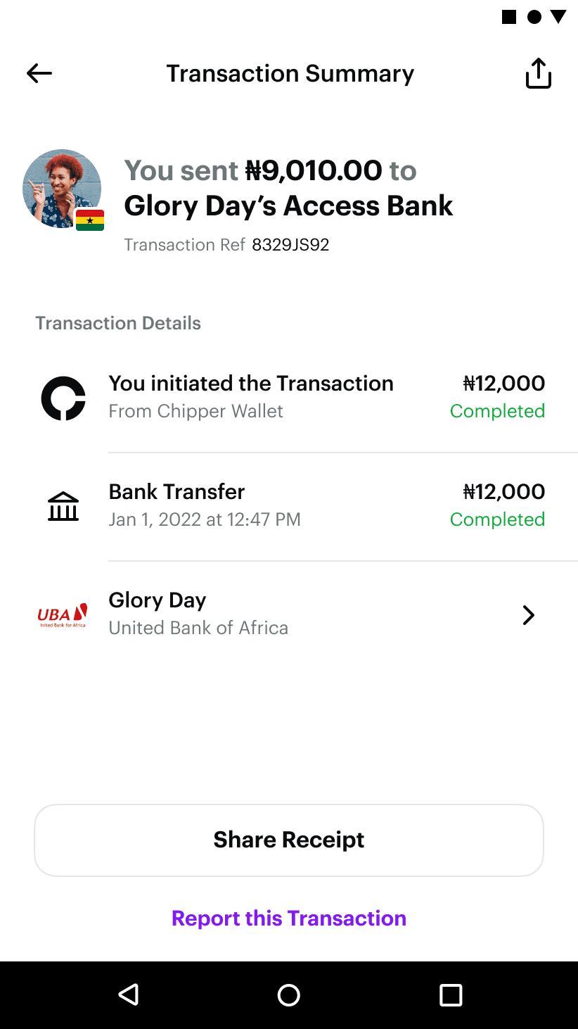 When I joined ChipperCash, we had S2NC launched in 1 country. I led design for expansion initiatives that saw that move from being available in 1 country to over 10 countries, with over $7.5M generated in Total Processed Volume, in half a year post launch. Pioneered conversations with external payment providers like ClickSendNow, Visa, Stitch, & Plaid to ideate how they could integrate seamlessly within our payment flow, and designing to fit both products. Worked on a fix that took just 2hours, but reduced weekly user compliants by 96.25% Built new comps for our DS, a culture of compliance x design collaboration amongst others. ChipperCash later raised $100M Series C Funding. I won ๐ Employee of the Year 2022.